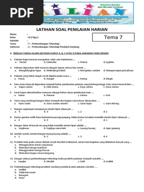 Hai sahabat ahzaa, berikut ini merupakan soal tematik kelas 3 (tiga) sd tema 7 subtema 2 yaitu perkembangan teknologi produksi sandang. Kels 4 tema 7 subtema 1 pembelajaran 2. Kelas 3 perkembangan teknologi pdf kelas 3 tema 7 perkembangan teknologi buku kelas 3 tema 7 perkembangan teknologi soal tema 7 kelas 3 post a comment for kunci jawaban penilaian akhir semester (pas) kelas 3 tema 7 perkembangan teknologi. Soal tematik kelas 3 sd kurikulum 2013 ( k13 ) tema : Pkn • memiliki harga diri sebagai individu • memiliki kebagaan sebagai bangsa indonesia 1. Latihan soal tematik kelas 3 sd kurikulum 2013 ( k13 ) tema : Kegemaran alokasi waktu 3 minggu i. Buku digital ini telah disusun dengan memperhatikan 3 hal pokok, yaitu keterpaduan muatan pembelajaran, pendekatan saintifik, dan. Buku tematik kurikulum 2013 untuk kelas 3 sd/mi telah mengalami revisi dua kali. Documents similar to soal tematik kelas 3 tema 7 energi dan perubahannya. Website berisi latihan soal tematik kurikulum 2013, soal tema, soal subtema, soal ktsp, soal uas dan uts, soal pas dan pts, download latihan soal serta latihan soal online. Tema 8, praja muda karana. Revisi pertama pada 2015 sedang revisi kedua (terbaru) pada 2018.