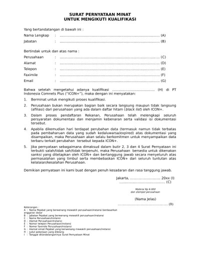 Kami adalah perusahaan yang bergerak dalam bidang jasa percetakan advertasing serta jurnalistik, dan teknologi . Menggunakan dokumen perusahaan serta surat pernyataan yang telah disampaikan pada. Pasalnya, format dokumen ini sederhana dan mirip dengan jenis surat . Pernyataan minat mengikuti pengadaan mitra jasa konstruksi. Saya tertarik untuk dikirimkan contoh surat pernyataan minat sehubungan dengan akuisisi perusahaan sebagai bahan acuan .