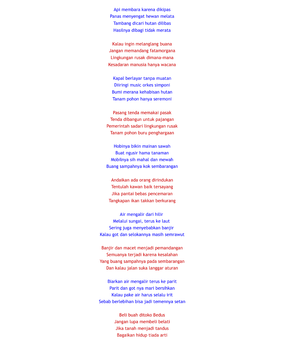 Kamu dapat lihat contoh pantun nasihat tentang lingkungan sebagai berikut. Buatlah pantun nasehat tentang menjaga kesehatan organ peredaran … Selain itu, kebersihan juga termasuk sebagian dari iman, dan menjaga kebersihan adalah pangkal dari kesehatan. Contoh pantun lingkungan sekolah buatlah pantun nasehat tema menjaga kesehatan! Pantun tentang lingkungan, lingkungan merupakan sesuatu atau bentuk benda apapun yang berada di sekitar kita. Coba buat pantun untuk mengajak teman dan keluarga hidup sehat, yuk! Maka kita harus selalu untuk . Pantun tentang kebersihan lingkungan sekolah ini semoga bermanfaat ya untuk semua sahabat dumay tercinta. Kumpulan pantun bertemakan kebersihan dan . Ini contoh pantun nasihat dengan tema menjaga kesehatan. Artikel ini akan membahas cara menyelesaikan soal tematik tema 4 halaman 41 subtema 1, tentang 'peredaran darahku sehat'? Inilah kumpulan pantun bertema hari pramuka. 14 agustus merupakan tanggal yang diperingati sebagai hari pramuka di indonesia.